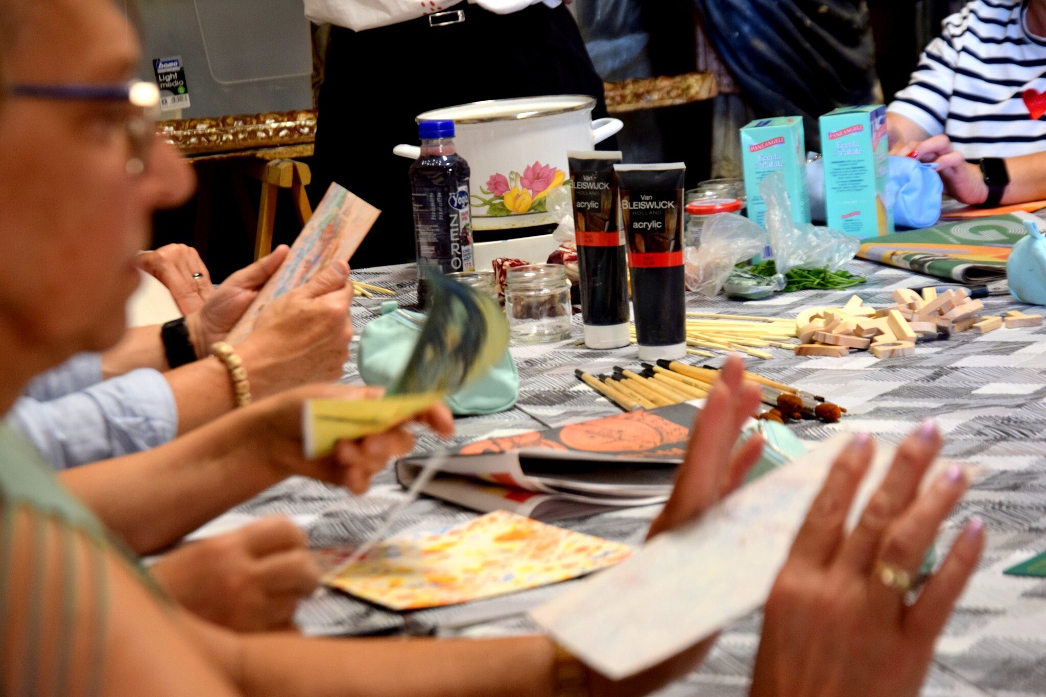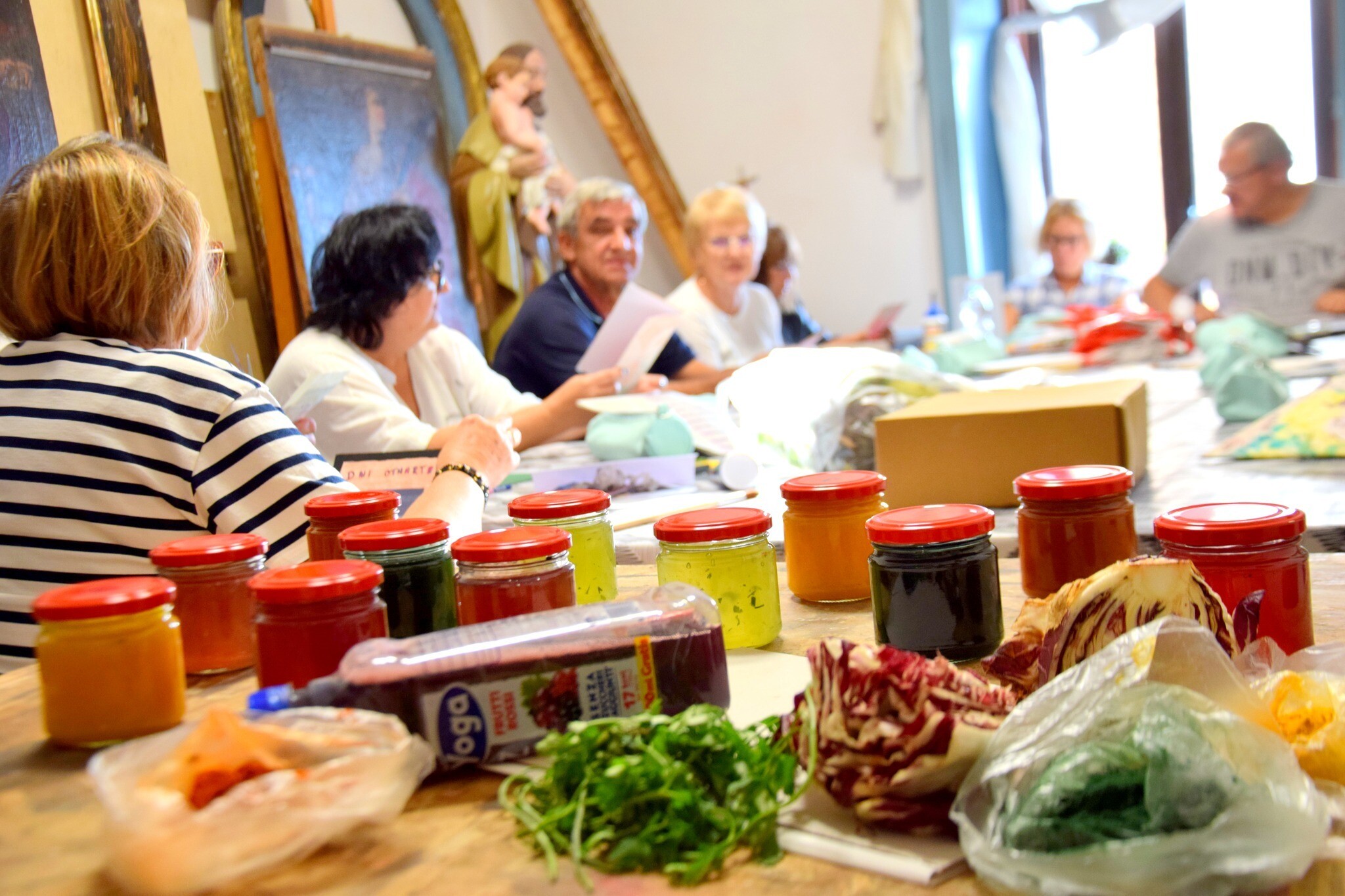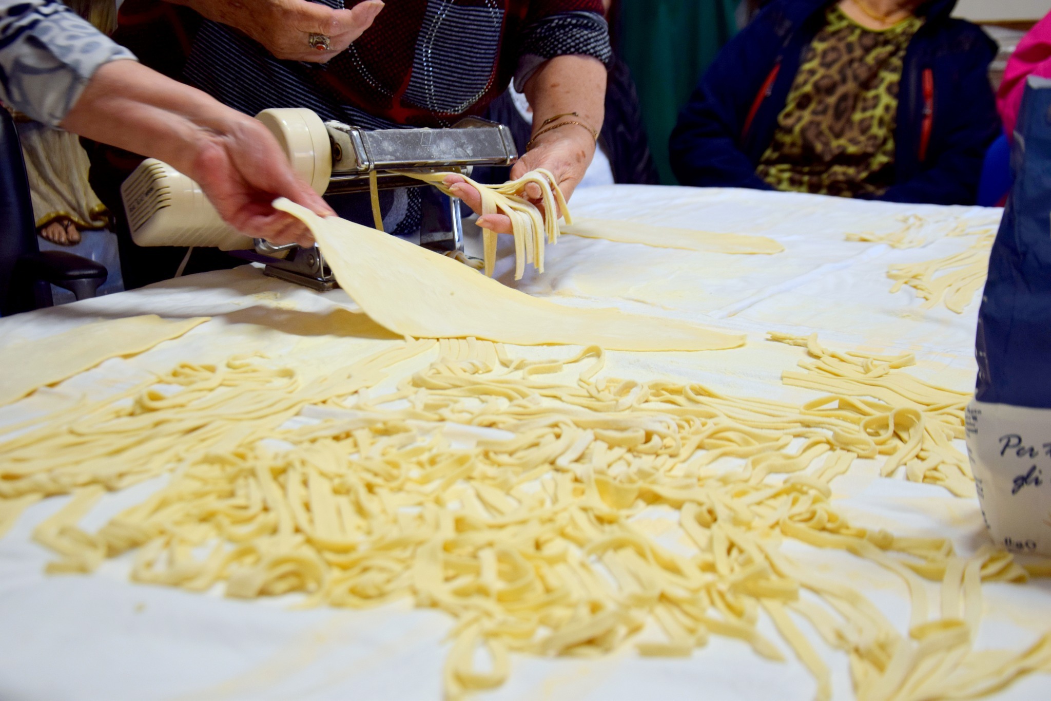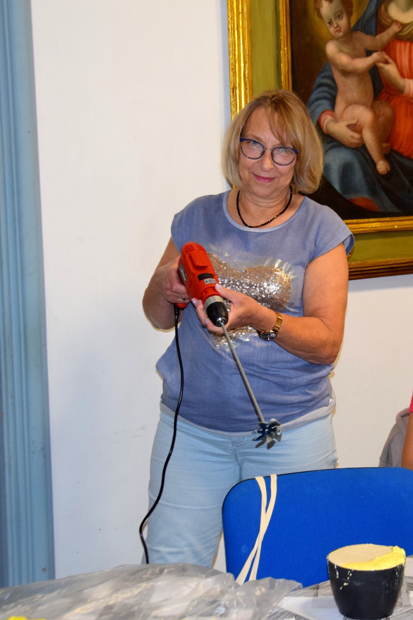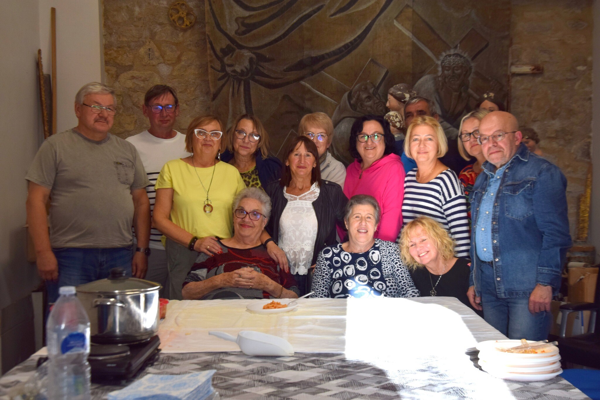 Z czasem farba zaczęła schodzić nam z rąk coraz trudniej. Złociliśmy powierzchnie, tworzyliśmy miniatury, eksperymentowaliśmy z fakturą, a potem przenieśliśmy tę twórczą energię do wspólnego gotowania z sycylijskimi seniorami. W trakcie warsztatu „Królestwo Makaronów” lepiliśmy makaron, śmialiśmy się i uczyliśmy, że dzielenie się tradycją to też forma sztuki. Wspólny posiłek stał się pretekstem do rozmowy o tym, jak smaki i gesty potrafią łączyć pokolenia.