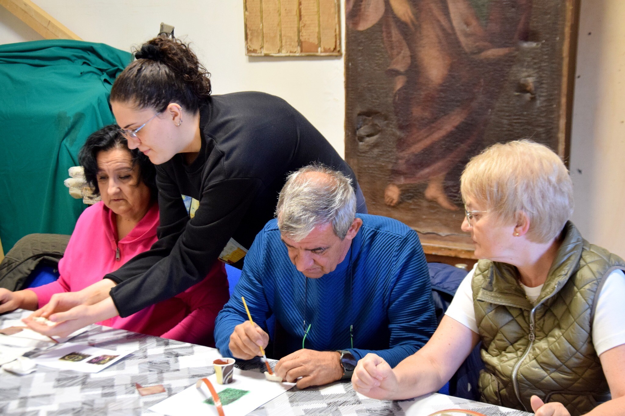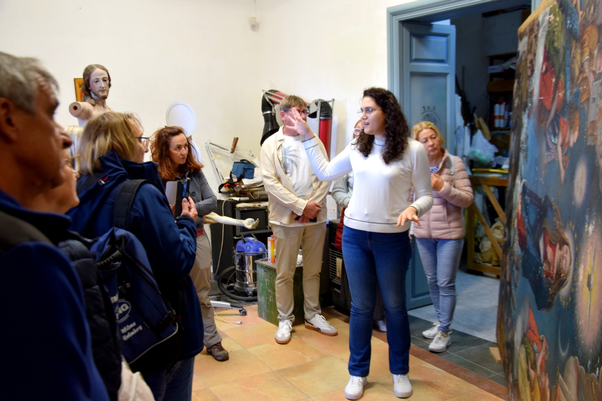 Pierwsze dni poświęciliśmy poznawaniu naszych włoskich partnerów z TRA ART Restauri, którzy z pasją opowiadali o swojej pracy i o tym, jak konserwacja dzieł sztuki może stać się formą społecznego dialogu. W ich pracowni odkrywaliśmy tajniki dawnych technik – od odlewów gipsowych po sgraffito, czyli zdobienie przez zdrapywanie kolejnych warstw koloru. Uczyliśmy się cierpliwości, dokładności i szacunku wobec materii, z której powstaje dzieło.