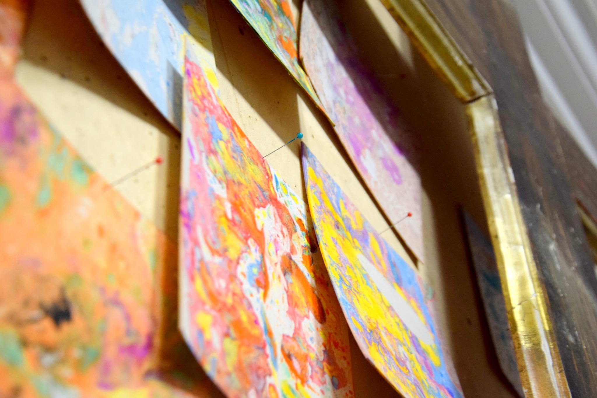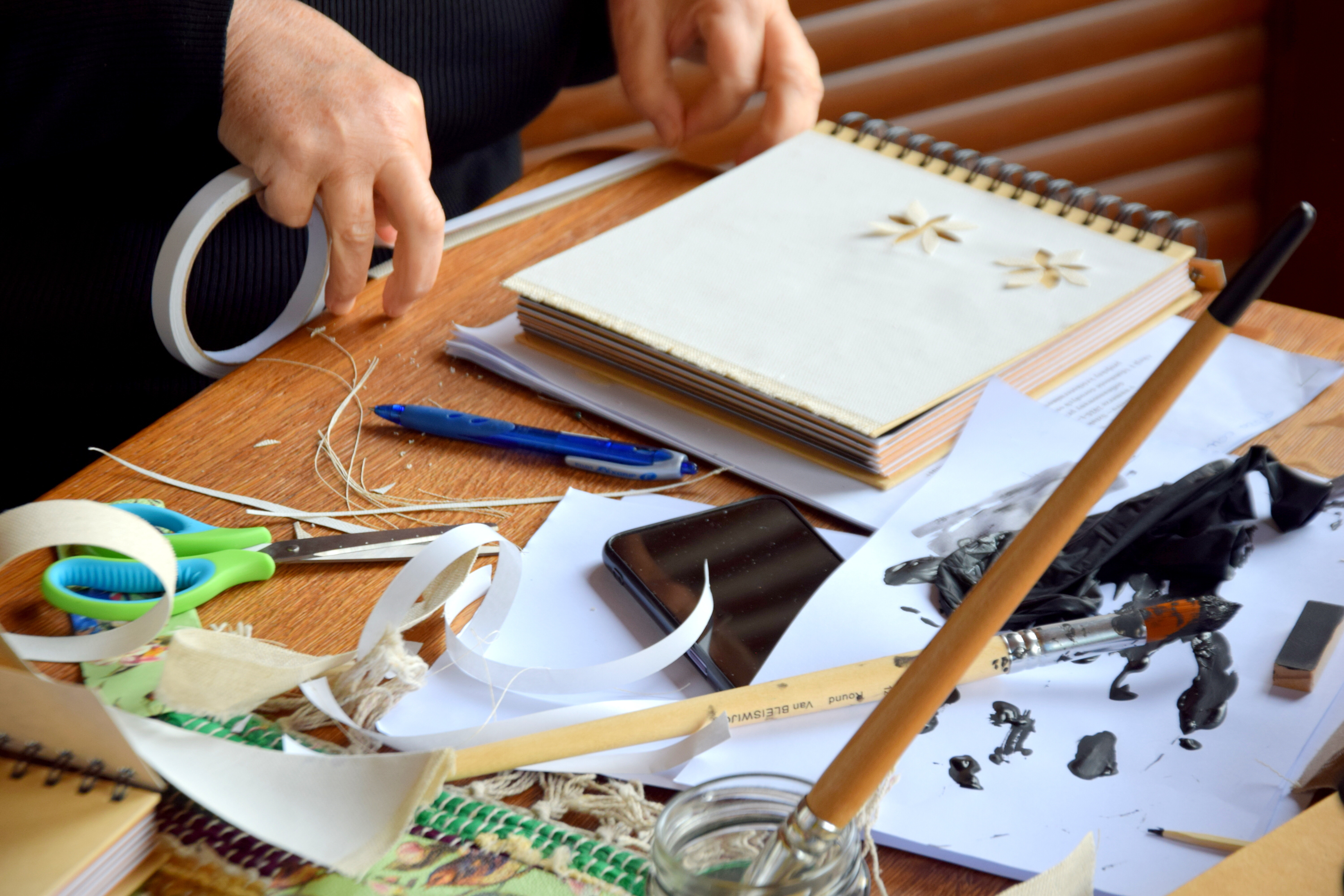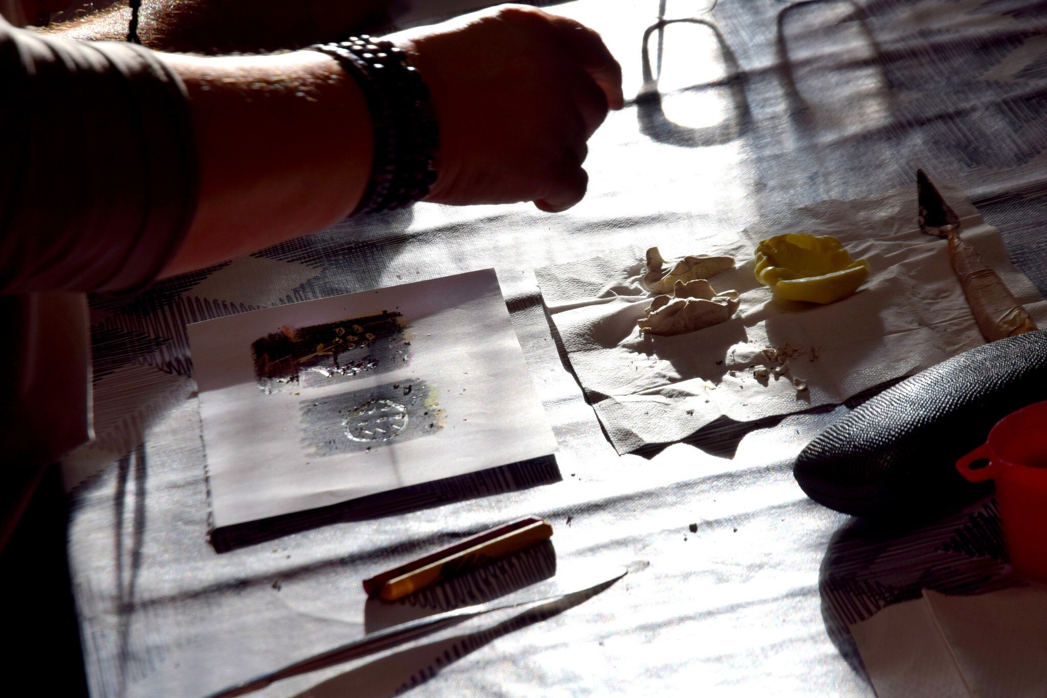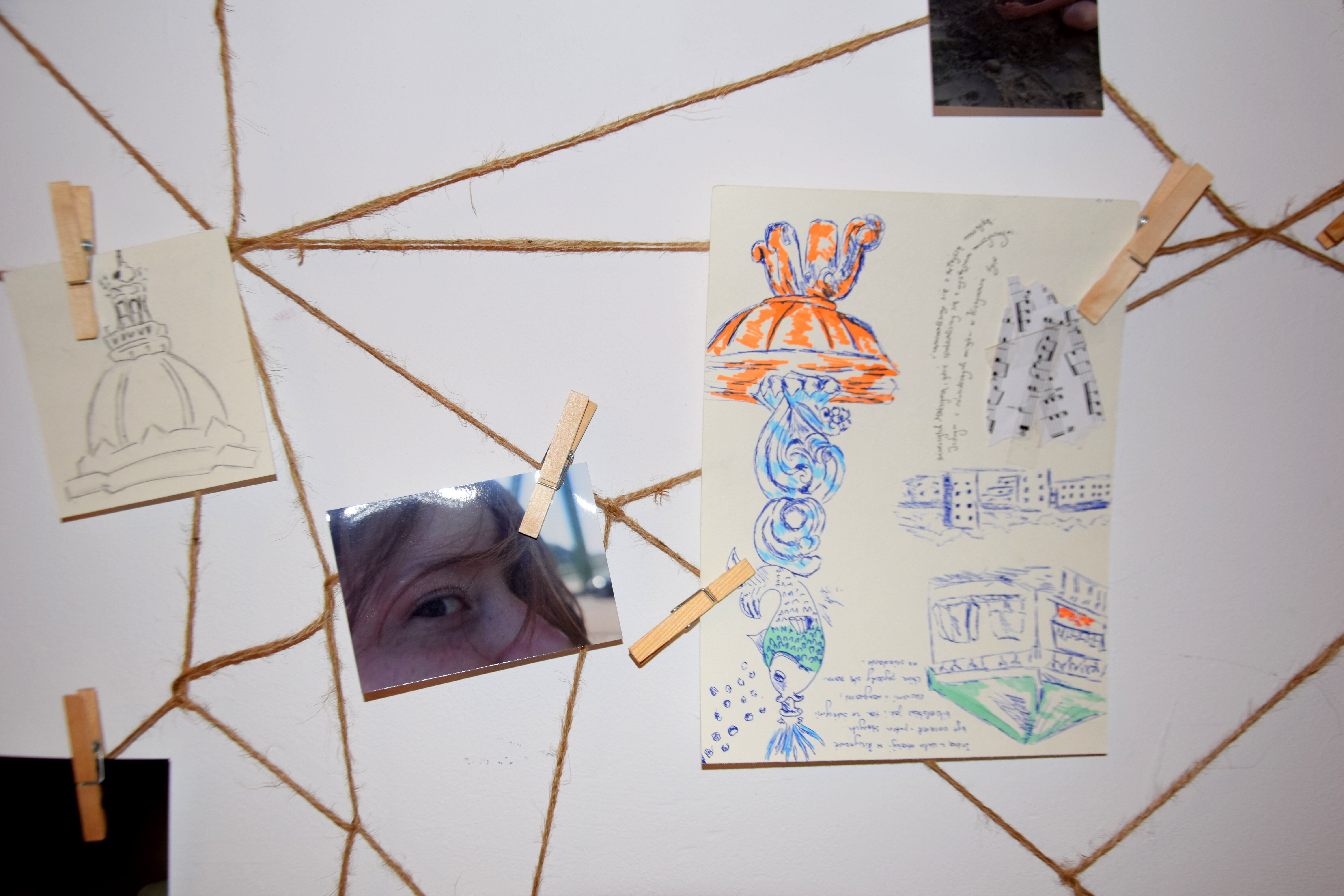 Na ekspozycji zobaczyć można cyjanotypie nasycone światłem południa, papiery marmurkowe, które jak fale niosą wspomnienie włoskiego nieba, szkicowniki refleksyjne, w których zapisały się codzienne odkrycia i czułe obserwacje świata, oraz fotografie – pełne śmiechu, skupienia i spotkań. Obok nich pojawiają się drobne przedmioty, wydruki, notatki i ślady pracy – wszystko to, co tworzy mapę tej niezwykłej podróży przez sztukę, materię i relacje.