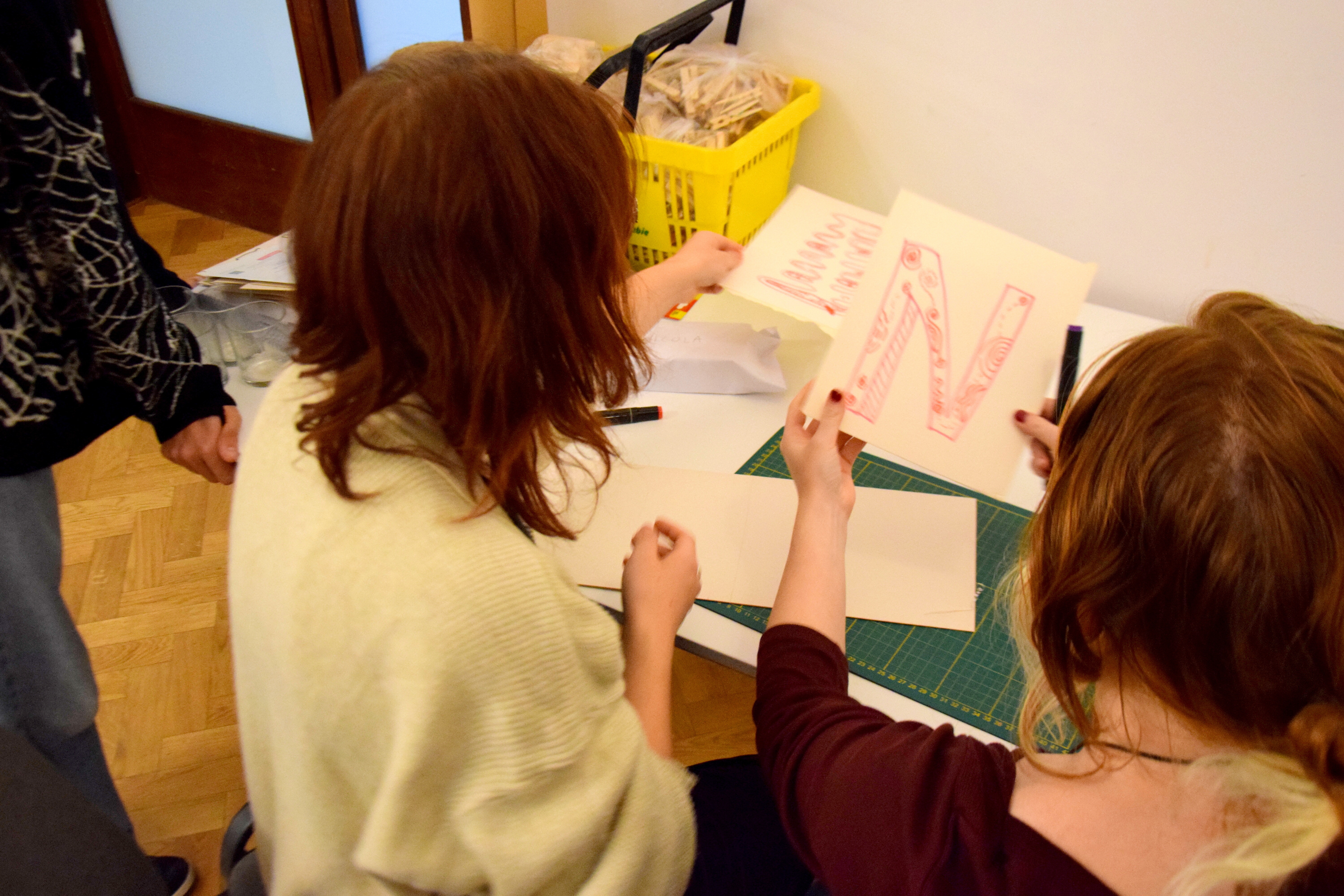 Potem przyszła pora na „Ćwiczenia z widzenia”. Płyty OSB zamieniły się w mapy wyobraźni. Z plam i struktur zaczęły wyłaniać się kształty – twarze, krajobrazy, fantastyczne światy. Była to podróż w głąb wrażliwości, w której każdy mógł odkryć coś innego, a jednak razem tworzyliśmy wspólną opowieść o patrzeniu i widzeniu więcej, niż widać na pierwszy rzut oka.